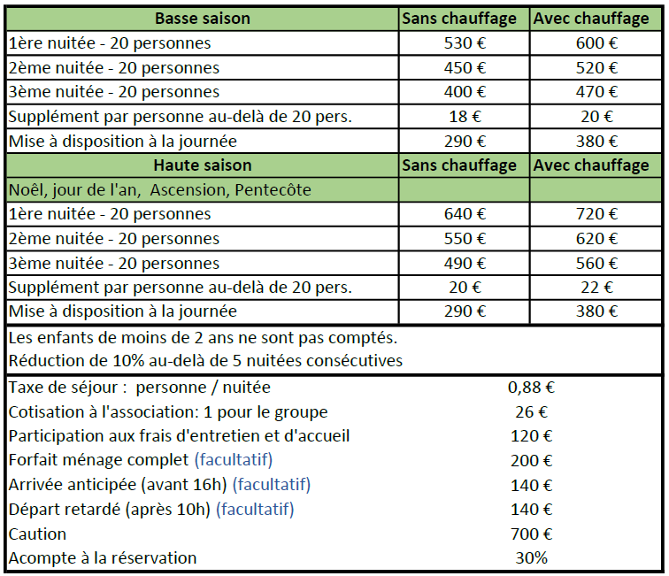 3 lits doubles, et 33 lits simples, par chambre de 2 à 6 personnes, sur 2 étages
